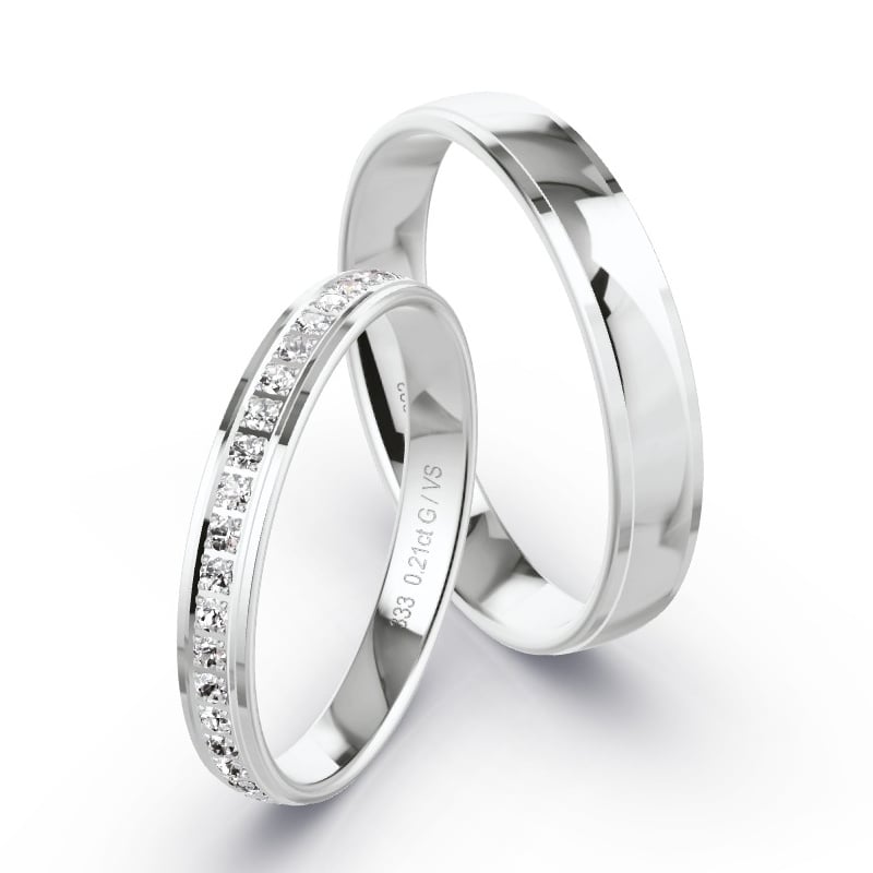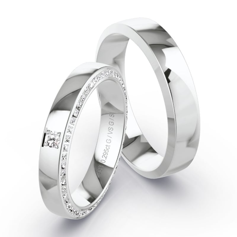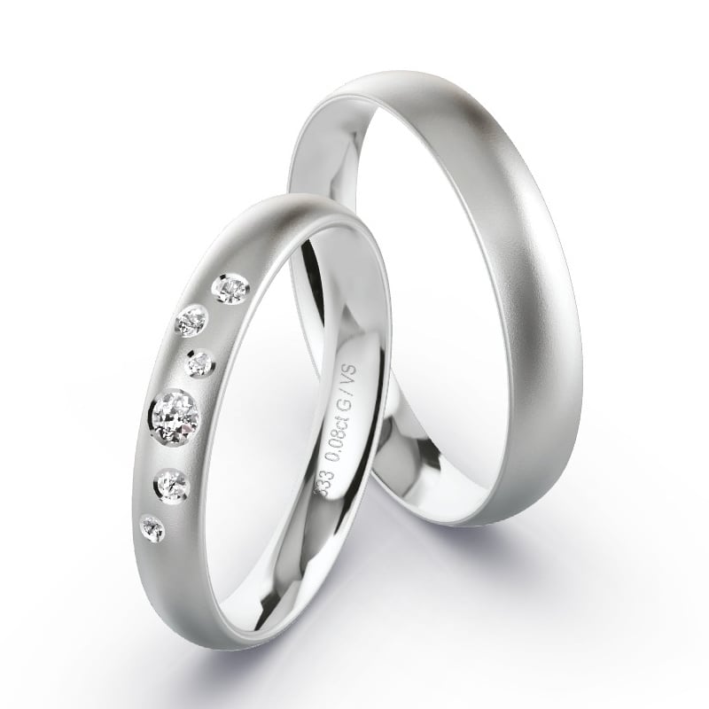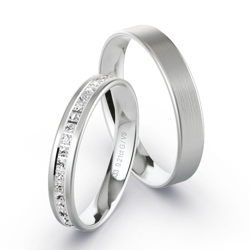 Ihre Formenvielfalt wird Sie begeistern: Sie finden in unserer Kollektion exklusive Trauringe in klassischem Design und in modernen Formen, puristische Modelle neben extravaganten Kreationen in wunderschönen Oberflächenbearbeitungen. Als exklusive Eheringe der ganz besonderen Art präsentieren sich die AURONIA Trauringe R 407: Ihre markante Form harmoniert ausgezeichnet mit der längsmatten Oberfläche und dem seitlich umlaufenden Diamantbesatz aus ca. 42 Steinen mit je 0,01 Carat und dem Einzeldiamanten von 0.03 Carat.